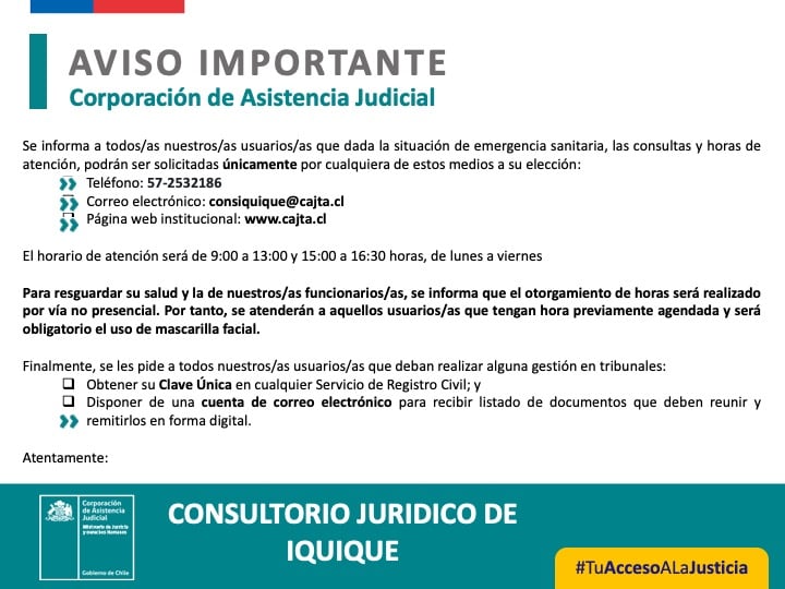 El día viernes 13 de Noviembre de 2020 el trabajador Social del Consultorio Jurídico Iquique dependiente de la Corporación de Asistencia Judicial don Emmanuel Martínez Álvarez, llevó a cabo una importante capacitación en materia de “Evaluación y Diagnóstico Social”, dirigida a los alumnos y alumnas de la carrera de Servicio Social del IP Santo Tomás, sede Iquique.