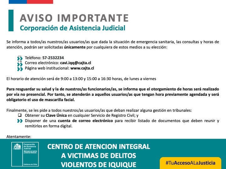 El Centro de Atención Víctimas de Delitos Violentos de la ciudad de Iquique fue invitado por la oficina de la mujer de la Ilustre Municipalidad de Iquique a participar como expositor en el Webinar "Violencia Contra las Mujeres en tiempos de Pandemia" la actividad de llevo a cabo el lunes 30 noviembre.