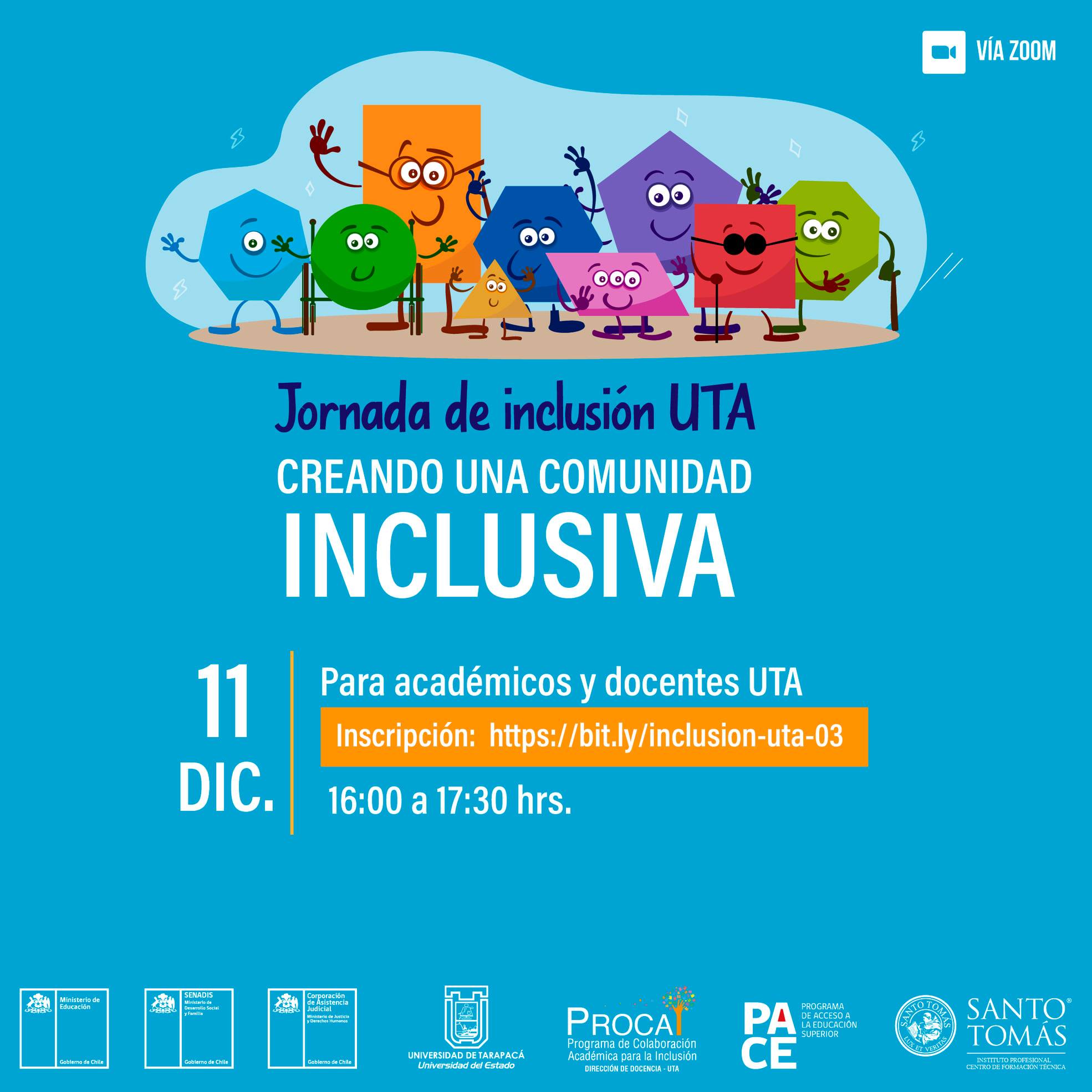 En dichas actividades también expusieron la Directora Académica CFTIP de la Universidad Santo Tomás, la Sra. Marcela Valenzuela que trató sobre las “Estrategias para el abordaje del aprendizaje inclusivo en educación superior”, y los profesionales PACE del área de Formación Integral de la Dirección de Docencia de la UTA, el Sr. Pablo Ampuero y la Sra. Valentina Buccioni abarcando los “Elementos para construir comunidad UTAína Inclusiva”, además de la participación del académico y abogado de la carrera de derecho el Sr. Sergio Pérez quien reflexionó sobre su experiencia como alumno y académico con discapacidad en la Universidad.