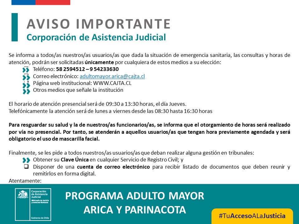 Por su parte, Daniela Pizarro Milanesi, abogada y Juan Bustamante Tapia, trabajador social, ambos de la unidad de Defensa Integral al Adulto Mayor, dieron a conocer la nueva iniciativa de atención especializa con la que cuenta la CAJTA, cuya finalidad es brindar atención, orientación y patrocinio judicial de manera gratuita a todas las personas mayores de 60 años o más que sean vÃctimas de VIF, sin considerar su situación socioeconómica.
