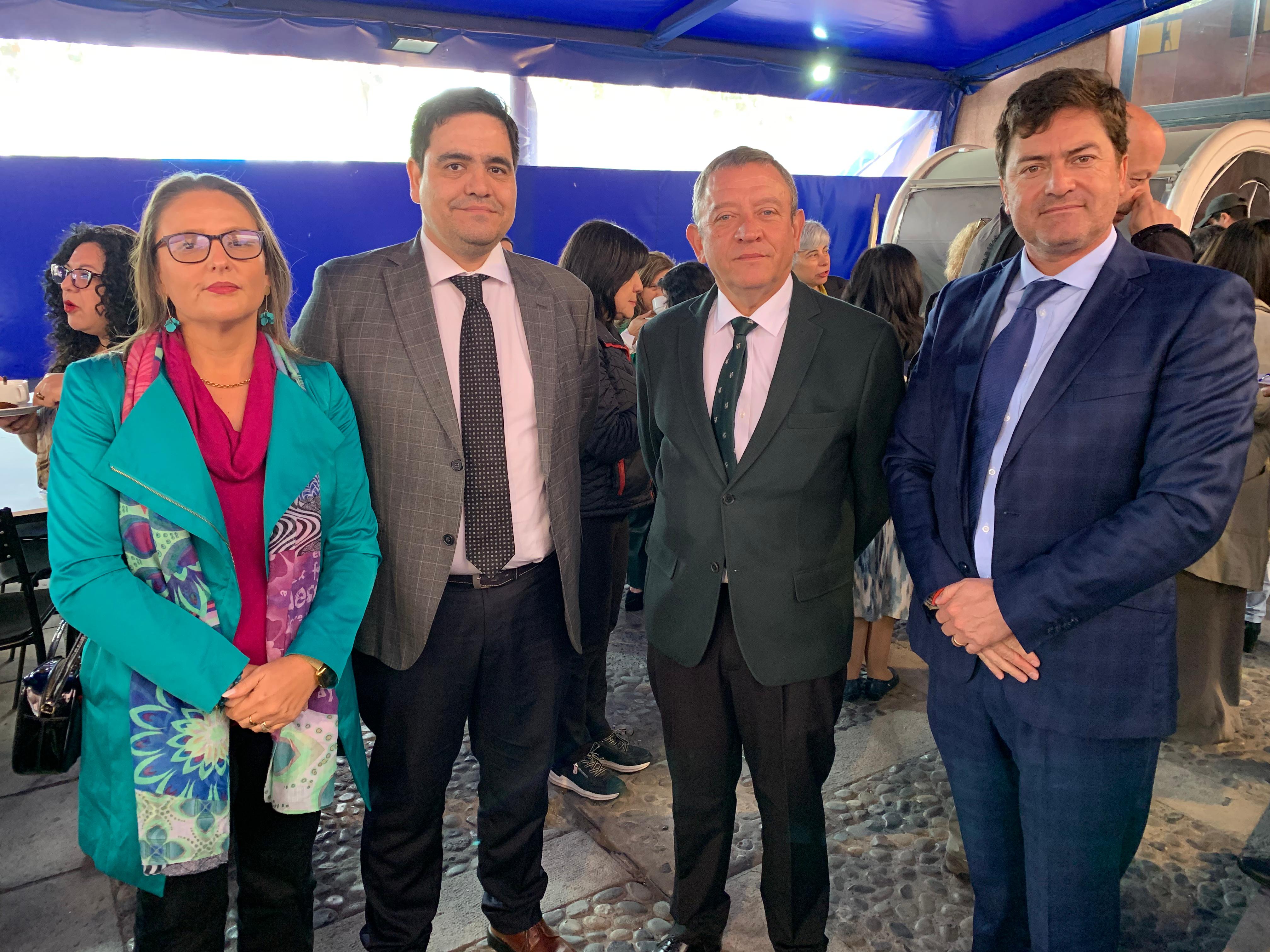 En la foto 2, junto a los directores generales de CAJMETRO, Rodrigo Mora, presidente FENADAJ, Marcelo Inostroza y Director de CAJVAL, Gastón Gauché