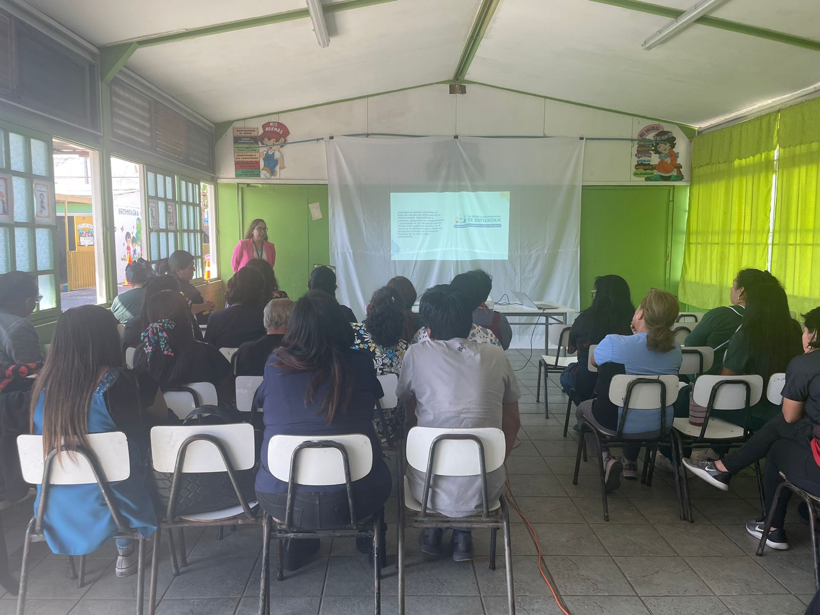 En el marco de las actividades orientadas a la prevención, La LÃnea de Representación JurÃdica La Niñez y Adolescencia se Defienden de la Región de Arica y Parinacota, a través de la Trabajadora Social Javiera Nogales Cuevas y la abogada Jessica Soto Gutiérrez, realizaron un Taller el dÃa 09 de octubre del presente año, al Equipo de profesores y asistentes de la educación del Colegio DarÃo Salas, ubicado en el kilometro 3 ½ del Valle de Azapa. El taller abordó la temática del resguardo de los derechos de los niños, niñas y adolescentes de los Centros Educacionales como Garantes de Derechos y la necesidad de trabajar por del buen trato de los niños, niñas y adolescentes y su pleno reconocimiento como sujeto de derechos.